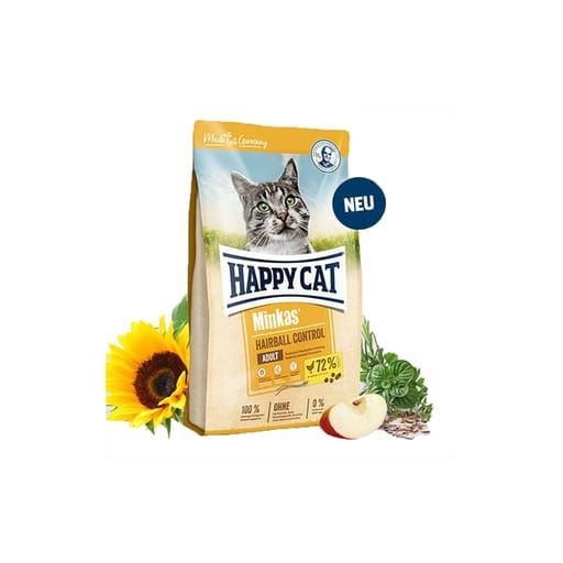 • Happy Cat Minkas Hairball Control Adult Cat Food – Poultry (1.5kg) is specially formulated to help reduce hairball formation in adult cats while providing complete nutrition.